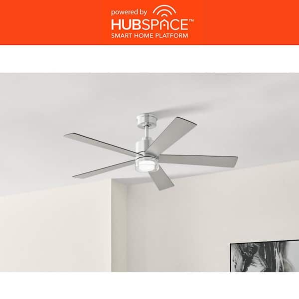 Bynum 52 in. Smart Indoor DC Motor Brushed Nickel Ceiling Fan with Adjustable White LED and Remote Powered by Hubspace