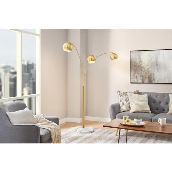 Caldwell 74.5 in. 3-Light Gold Arc Floor Lamp with Metal Shades and White Marble Base