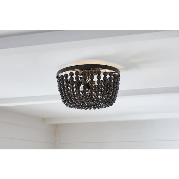 Cayman 13 in. 2-Light Black Beaded Flush Mount Ceiling Light Fixture with Black Beaded Shade