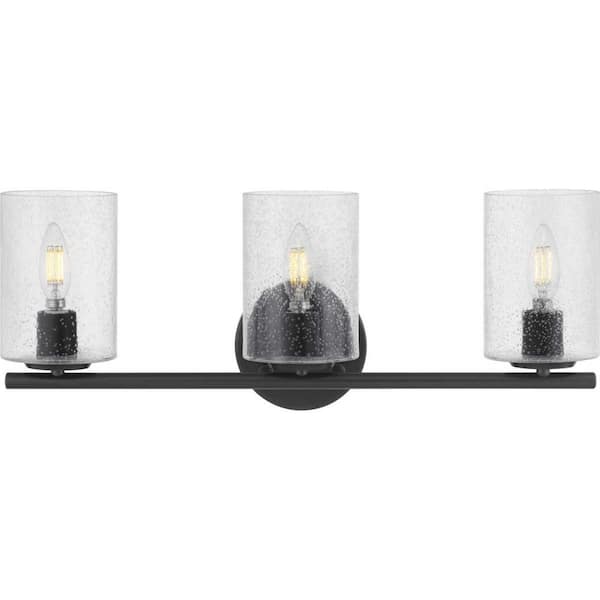 Champlain 22.375 in. 3-Light Matte Black Modern Bathroom Vanity Light with Clear Seeded Glass Shades