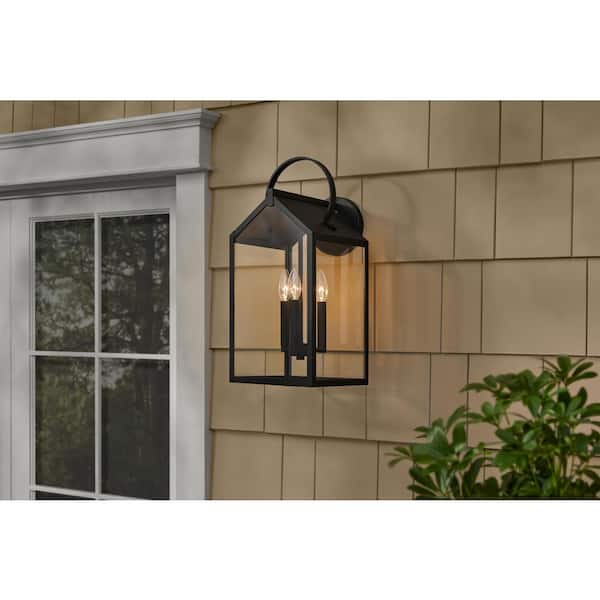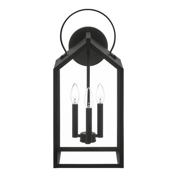 Charlotte 21.62 in. H Matte Black Finish Hardwired Outdoor Wall Light with Clear Glass
