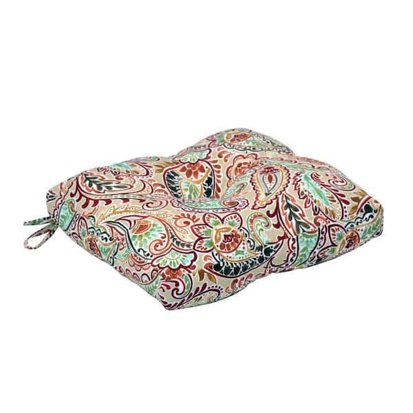 Chili Paisley Square Tufted Outdoor Bistro Seat Cushion (2-Pack)