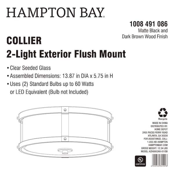 Collier 2-Light Black and Brown Wood Outdoor Ceiling Light Flush Mount Light with Clear Seeded Glass