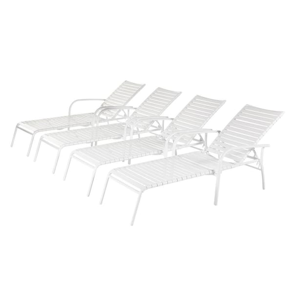 Commercial Aluminum White Strap Outdoor Chaise Lounge (4-Pack)