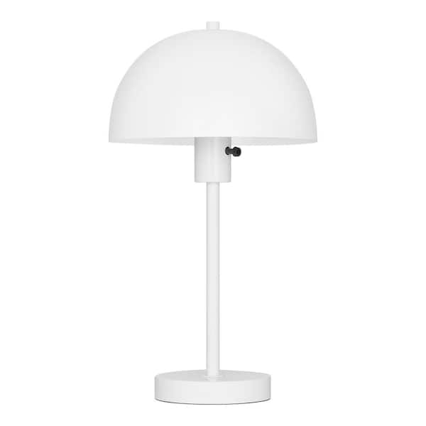 Corbin 17.5 in. White Modern 1-Light Table Lamp with Metal Dome Shade and AC Outlet on Base