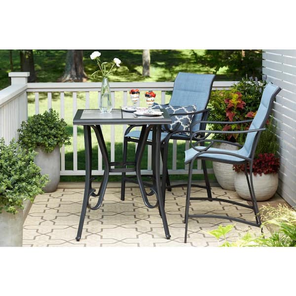 Crestridge Stationary Steel Padded Sling Balcony Height Outdoor Dining Chair in Conley Denim (2-Pack)