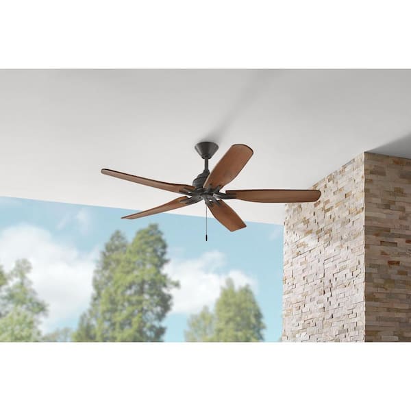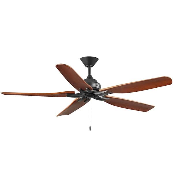 Danetree 60 in. Indoor/Outdoor Natural Iron Ceiling Fan with Hand Carved Wood Blades and Pull Chain Included