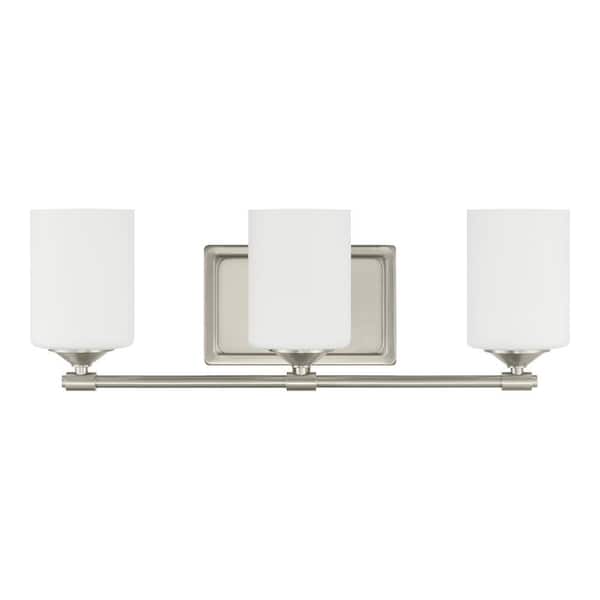 Darlington 20.88 in. 3-Light Brushed Nickel Vanity Light with Frosted Opal Glass Shades