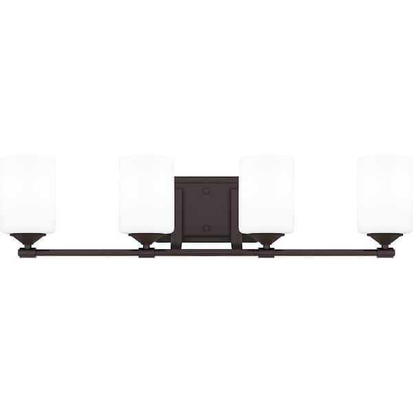 Darlington 29.5 in. 4-Light Bronze Vanity Light with Frosted Opal Glass Shades