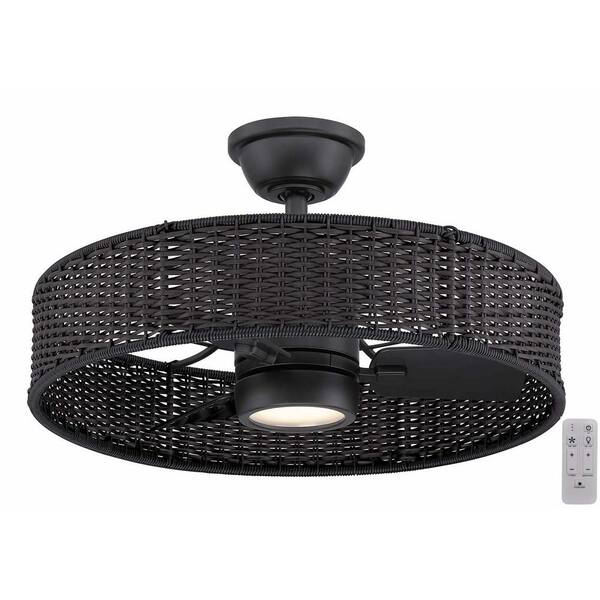 Darya 25 in. Indoor/Outdoor Matte Black with Brown Wicker Ceiling Fan with Adjustable White LED with Remote Included