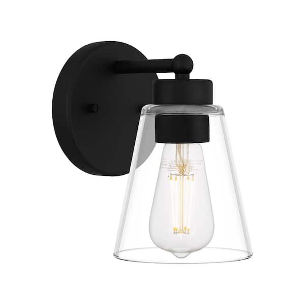 Eastburn 1-Light Matte Black Wall Sconce with Clear Glass Shade