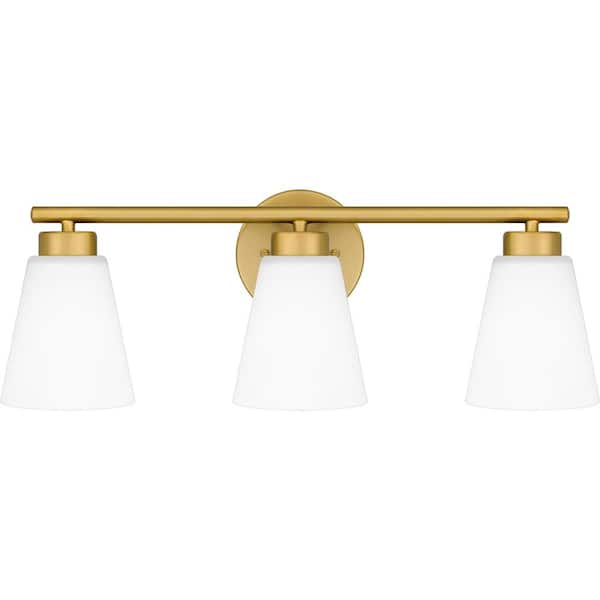 Eastburn 22 in. 3-Light Gold Vanity Light with Frosted Glass Shades