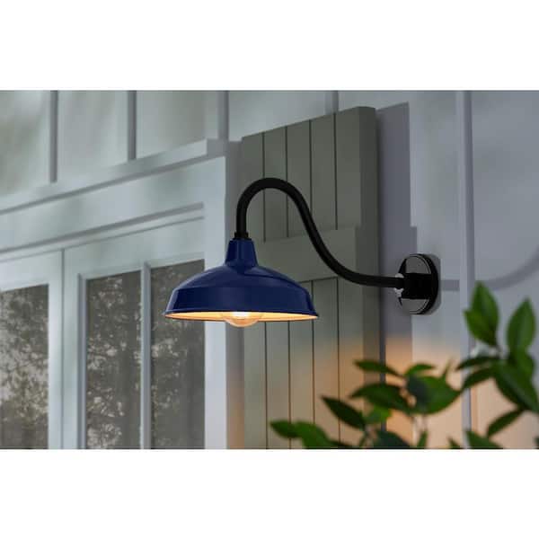 Easton 11 in. 1-Light Navy Blue Barn Outdoor Wall Light Lantern Sconce with Steel Shade