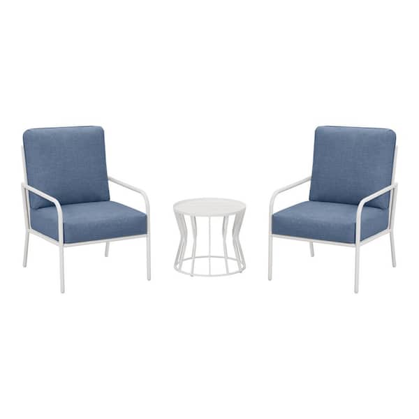 Edina Bay 3-Piece Metal Outdoor Chat Set with CushionGuard Twist Blue Cushions