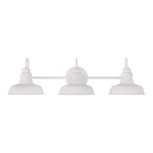 Elmcroft 29 in. 3-Light Designer White Farmhouse Vanity with Metal Shades