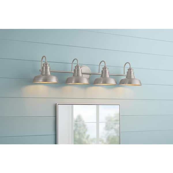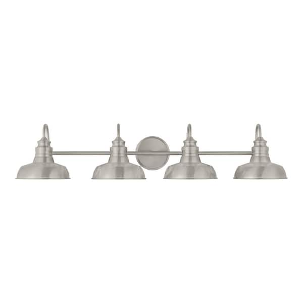 Elmcroft 38 in. 4-Light Brushed Nickel Farmhouse Vanity with Metal Shades