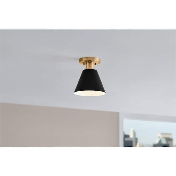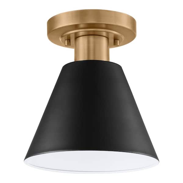 Finley 8 in. 1-Light Black and Brass Semi-Flush Mount Ceiling Light Fixture with Metal Shade