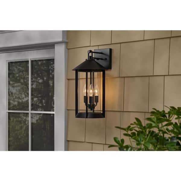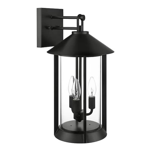 Finley Point 17.8 in. 3-Light Matte Black Outdoor Wall Sconce cylinder Lamp