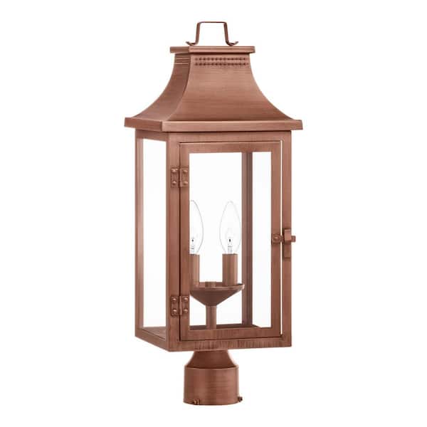 Flaxton 2-Lights 21.5 in. Copper Metal Hardwired Weather Resistant Outdoor Post Light with No Bulbs Included