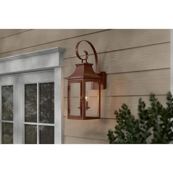 Flaxton 24 in. Handmade Copper Outdoor Barn Wall Lamp with Clear Glass Shade