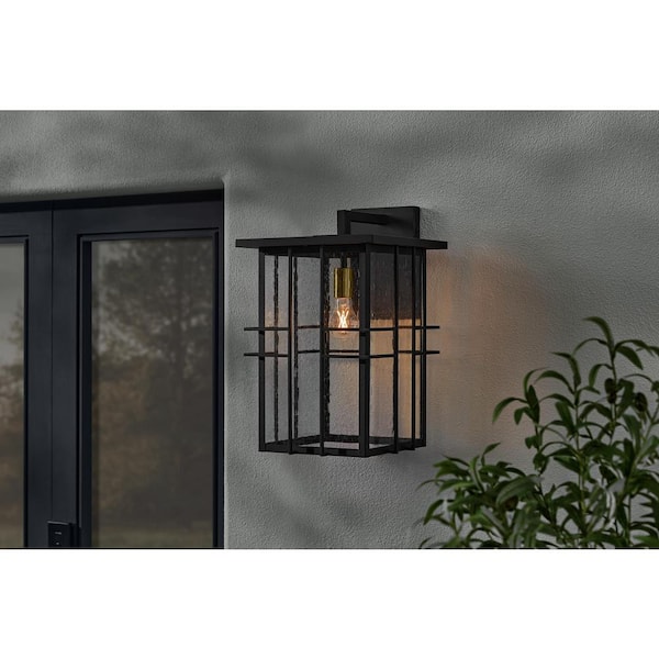 Glenfield Large 19 in. 1-Light Black Outdoor Wall Light Fixture with Seeded Glass