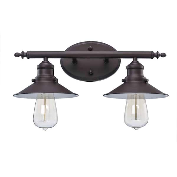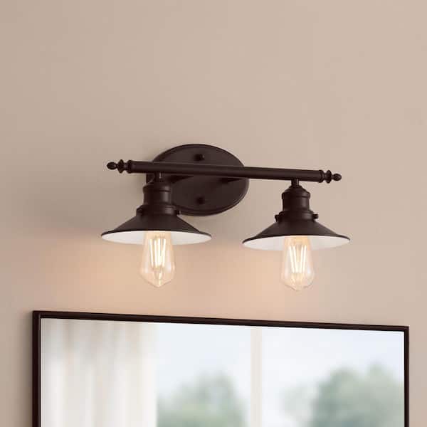Glenhurst 16 in. 2-Light Industrial Farmhouse Bronze Bathroom Vanity Light Fixture with Metal Shades