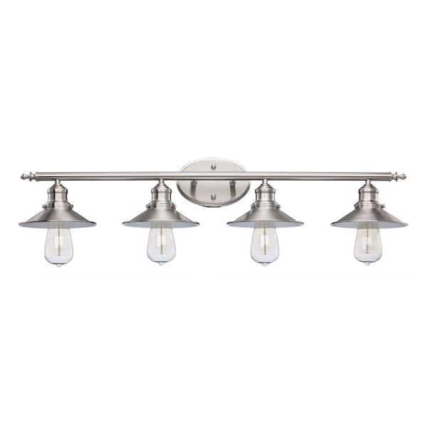 Glenhurst 34 in. 4-Light Industrial Farmhouse Brushed Nickel Bathroom Vanity Light Fixture with Metal Shades