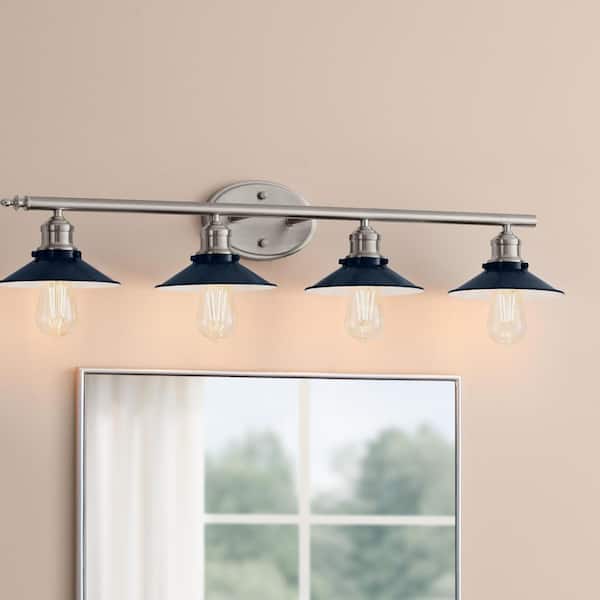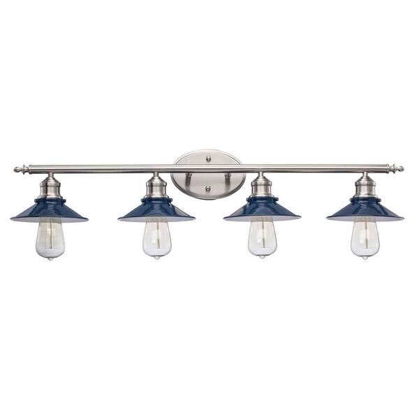 Glenhurst 34 in. 4-Light Industrial Farmhouse Cobalt and Brushed Nickel Bathroom Vanity Light Fixture with Metal Shades
