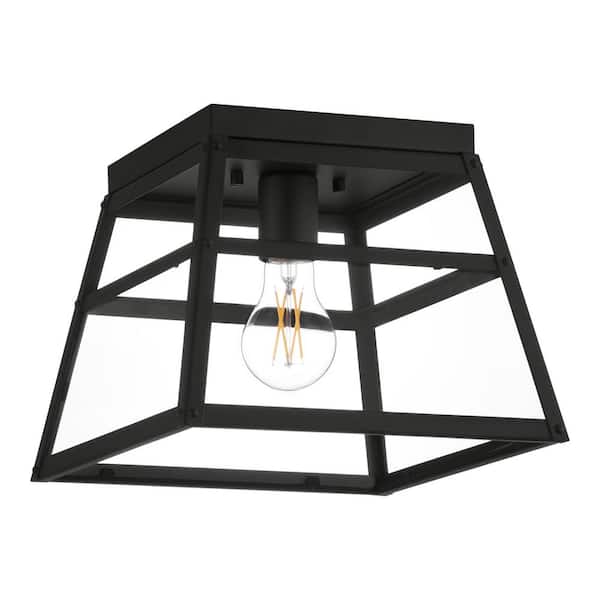 Grantsdale 1-Light Matte Black Outdoor Flush Mount Ceiling Light with Clear Glass, No Bulbs Included