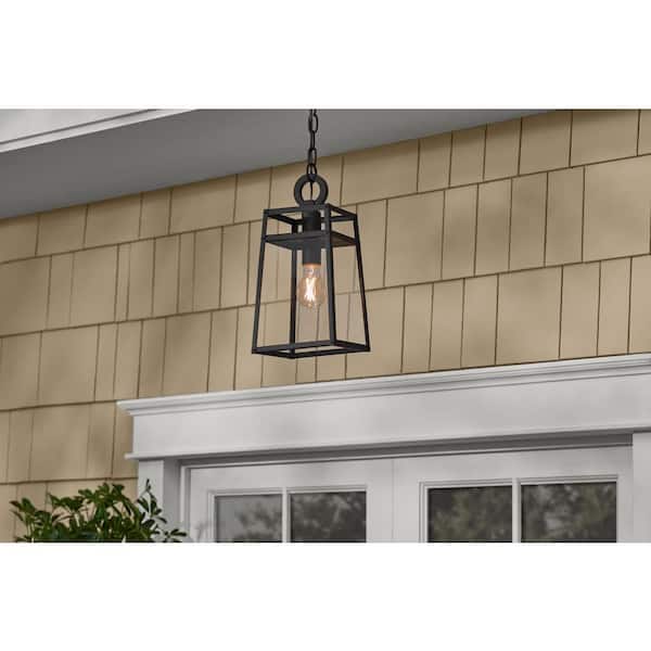 Grantsdale 14.69 in. 1-Light Matte Black Outdoor Hanging Light Pendant Light with Clear Glass and No Bulb Included