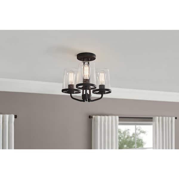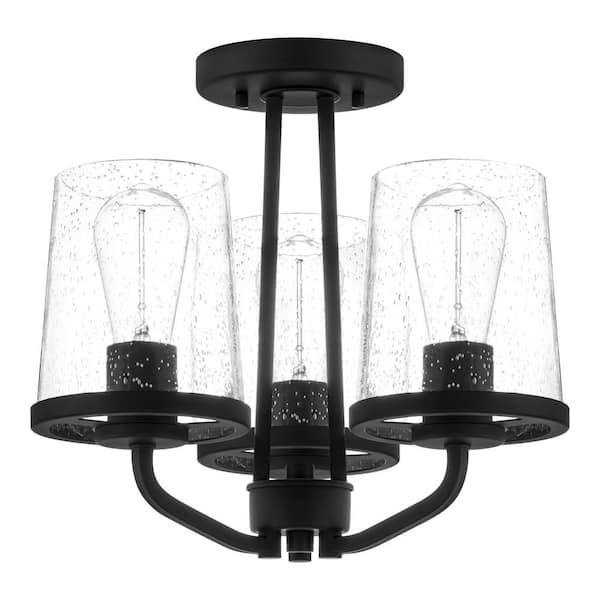 Grantsville 14 in. 3-Light Matte Black Semi-Flush Mount with Clear Seedy Glass Shades