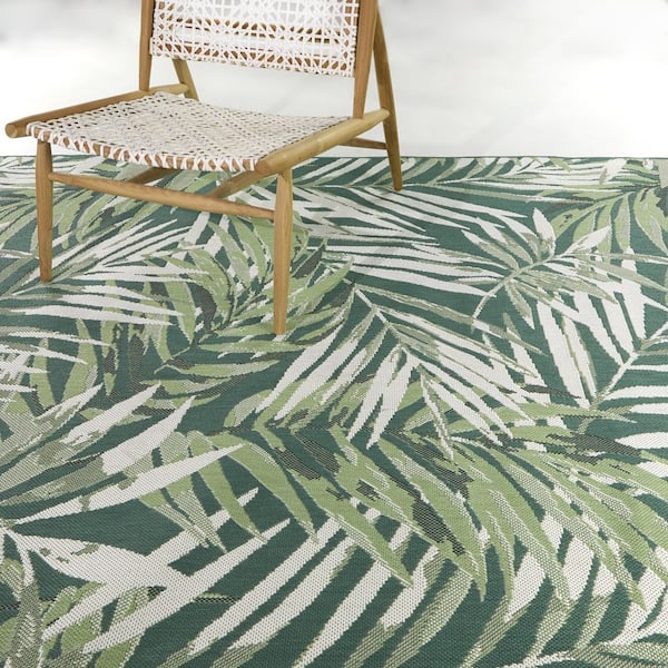 Green 7 ft. x 9 ft. Palm Indoor/Outdoor Patio Area Rug