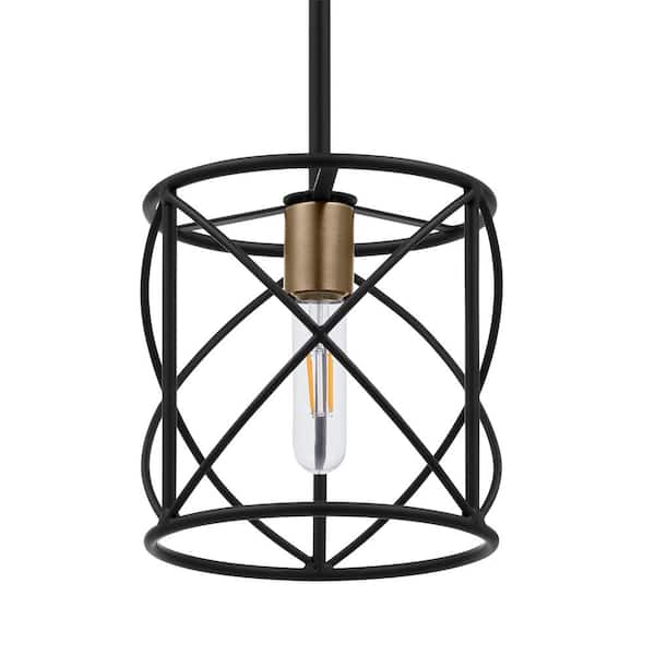 Hastings 60-Watt 1-Light Matte Black Contemporary Pendant Light with Open Cage Design and No Bulbs Included