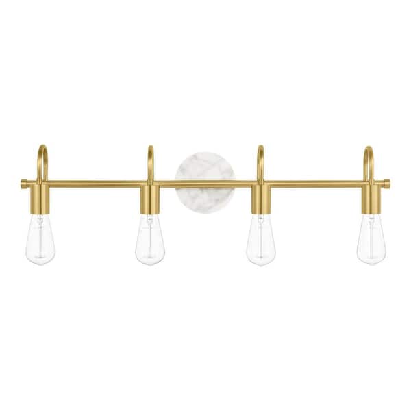 Hensley 30 in. 4-Light Gold and Faux Marble Bathroom Vanity Light Fixture
