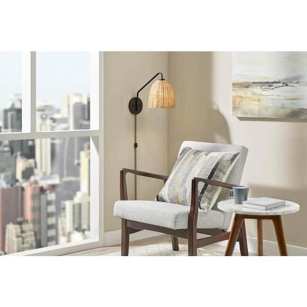 Highler 1-Light Matte Black Wall Sconce with Natural Rattan Shade