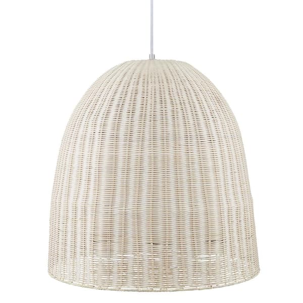 Highler 1-Light Silver Pendant Light with White Rattan Shade