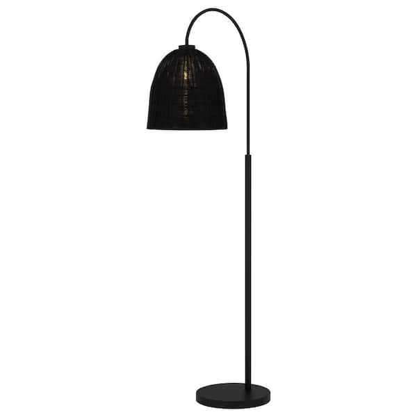 Highler 61 in. Matte Black Floor Lamp with Black Rattan Shade