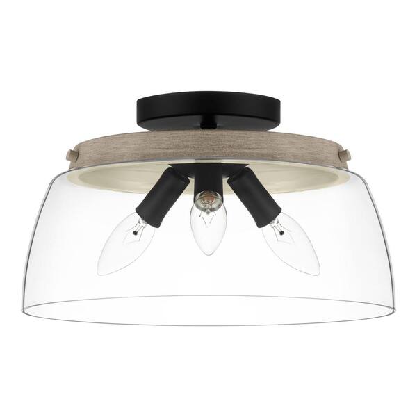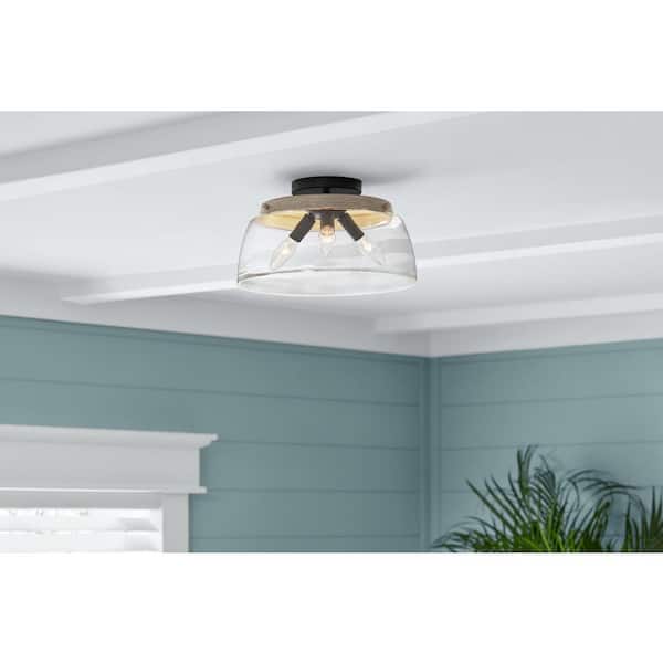 Hillgrove 13 in. 3-Light Matte Black Flush Mount with Clear Glass Shade
