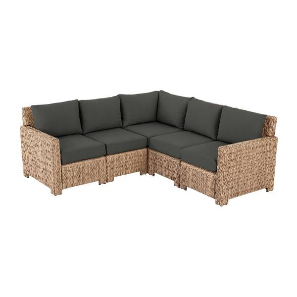 Laguna Point 5-Piece Natural Tan Wicker Outdoor Patio Sectional Sofa with CushionGuard Graphite Dark Gray Cushions