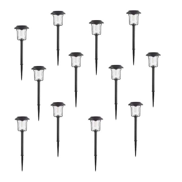 Laurelview 14 Lumen Black LED Weather Resistant Outdoor Solar Path Light with Glass Lens (12-Pack)