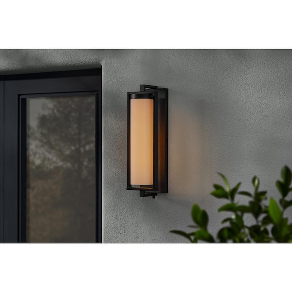 Libby 16.37 in. 1-Light Medium Matte Black Transitional Outdoor Wall Lantern with Opal Glass Shade