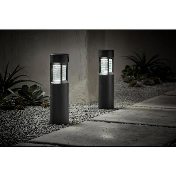 Limestone Solar 10 Lumens Matte Black Integrated LED Bollard Light with Motion Sensor and Adjustable Height (2-Pack)