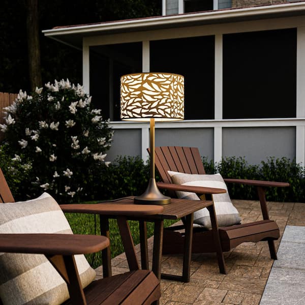 Lindley 30 in. Black Outdoor/Indoor Table Lamp with Off-White and Black Fabric Shade