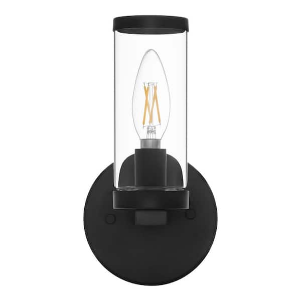 Loveland 1-Light Black Indoor Wall Sconce Light Fixture with Clear Glass Shade