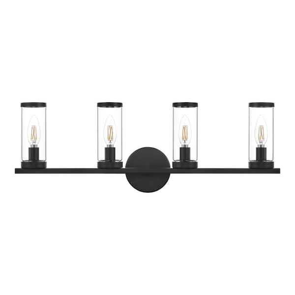 Loveland 25 in. 4-Light Black Bathroom Vanity Light Fixture with Clear Glass Shades