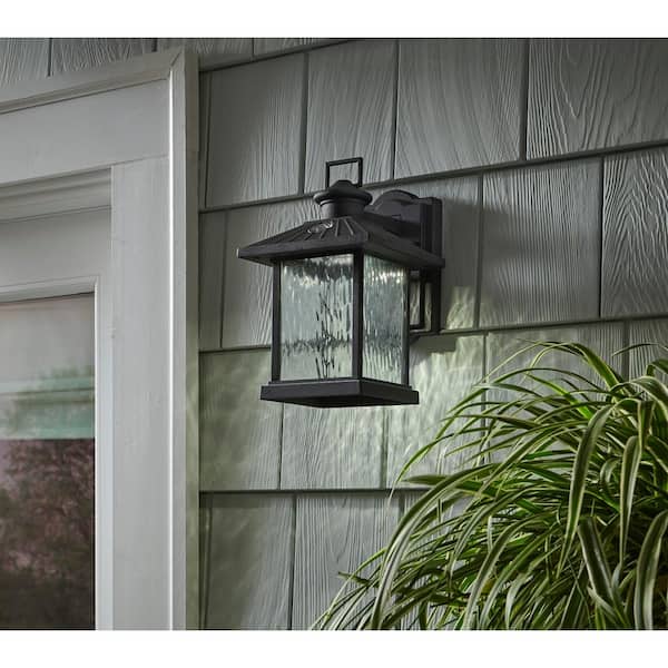 Lumsden 11.22 in. Black Dusk to Dawn Integrated LED Outdoor Wall Lantern Sconce