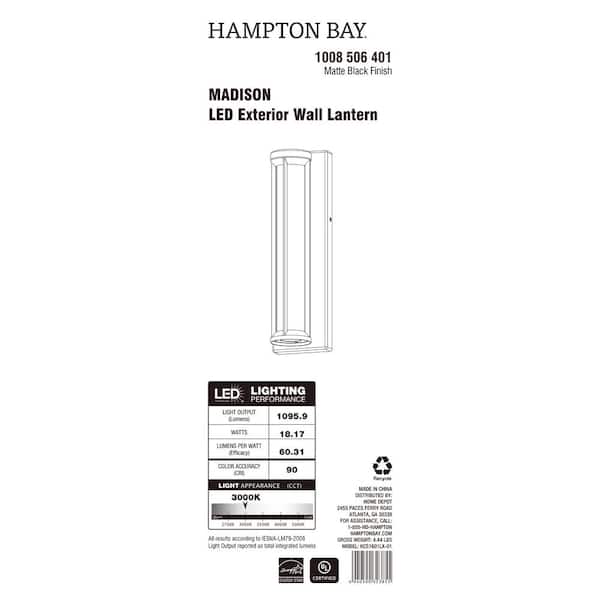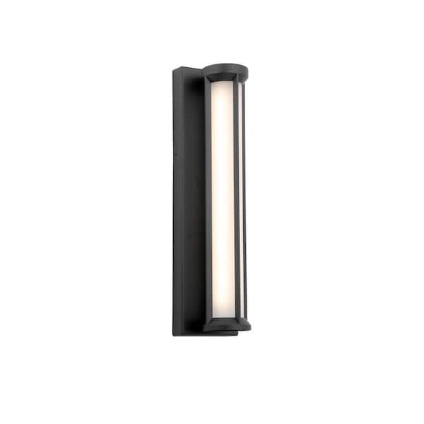 Madison 18.125 in. Black Integrated LED Outdoor Wall Sconce Light with Frosted Glass