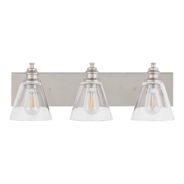 Manor 24 in. 3-Light Polished Nickel Industrial Bathroom Vanity Light with Clear Glass Shades