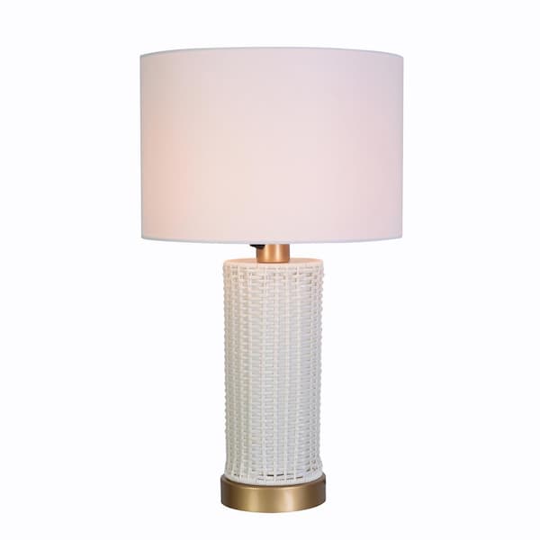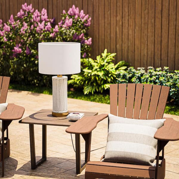 Maplebrook 27. 5 in. White and Gold Outdoor/Indoor Round Table Lamp