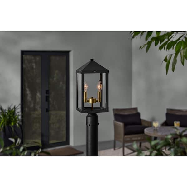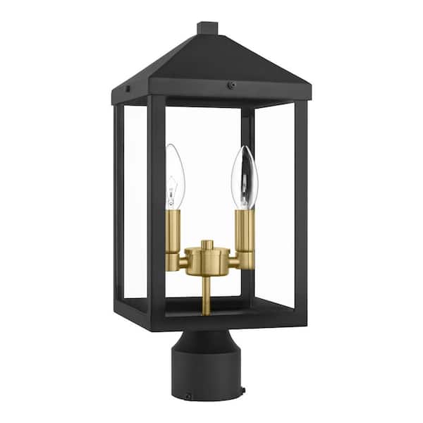 Marion 2-Lights 16 in. Black Metal Hardwired Weather Resistant Outdoor Post Light with No Bulbs Included